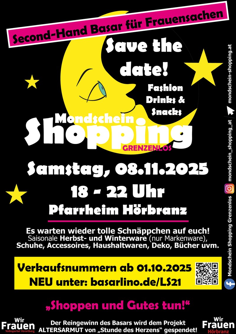 Mondschein Shopping GRENZENLOS und WIR FRAUEN Hörbranz laden herzlich ein zum nächsten
